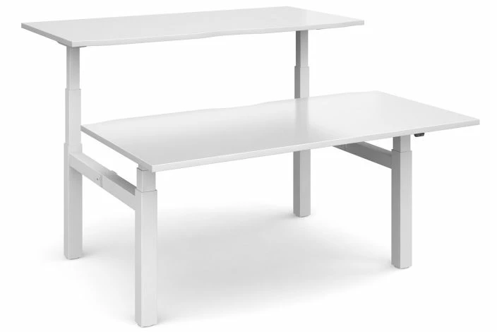 All White Premium Deluxe Sit & Stand Back-To-Back Desk