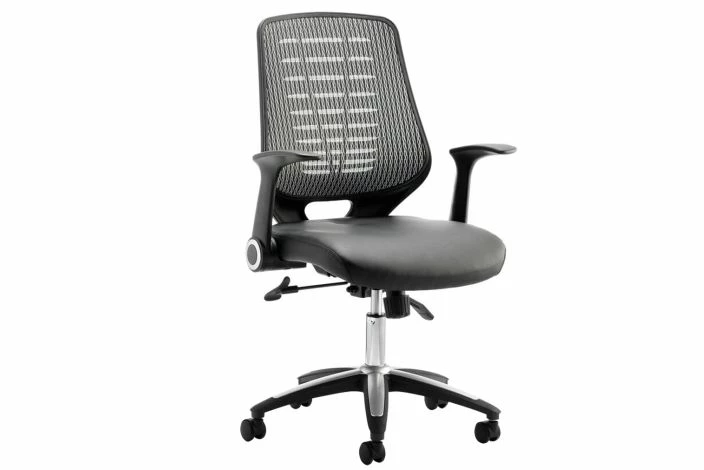 Baton High Silver Mesh Back Operator Chair With Leather Seat