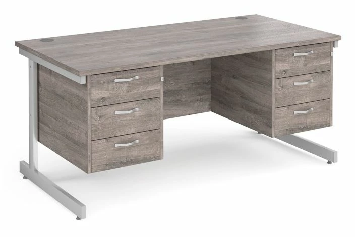 Thrifty Next-Day Rectangular Desk 3+3 Drawers Grey Oak