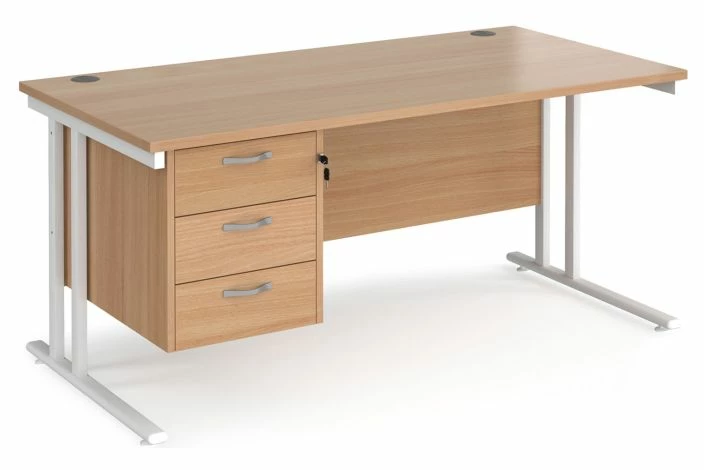 Value Line Deluxe C-Leg Rectangular Desk 3 Drawers (White Legs)